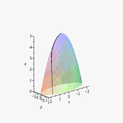 For the surface depicted in Figure 1, the latter differential equation is , with solution . The apex of that surface is a critical point for the gradient field, that is,  at the top of the hill. Hence, it is necessary to find curves of steepest ascent, and for this, we select initial points along the level curve , that is, along the ellipse . Figure 3 shows the surface, along with a collection of steepest-ascent curves emanating from points along the base ellipse. The details are hidden behind the table containing the figure.