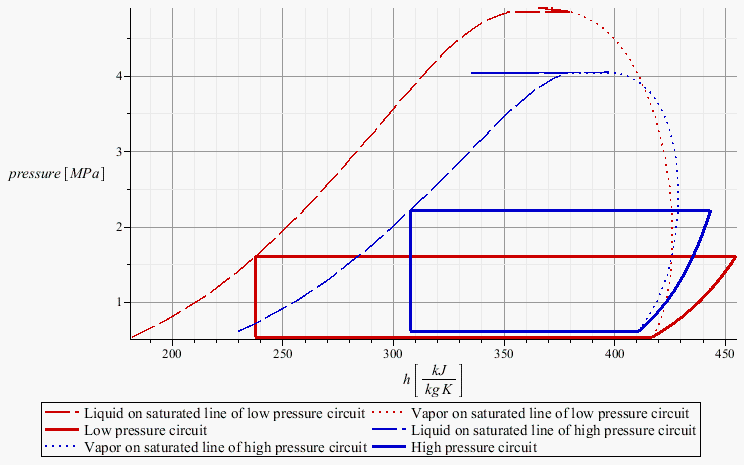 plots:-display(ph[sl, L], ph[sv, L], ph[1, Units:-Standard:-`+`(L, -2), L], ph[2, Units:-Standard:-`+`(L, Units:-Standard:-`-`(sv)), 2, L], ph[sv, 2, Units:-Standard:-`+`(L, -3), L], ph[3, Units:-Standard:-`+`(L, -4), L], ph[4, Units:-Standard:-`+`(L, -1), L], ph[sl, H], ph[sv, H], ph[1, Units:-Standard:-`+`(H, -2), H], ph[2, Units:-Standard:-`+`(H, Units:-Standard:-`-`(sv)), 2, H], ph[sv, 2, Units:-Standard:-`+`(H, -3), H], ph[3, Units:-Standard:-`+`(H, -4), H], ph[4, Units:-Standard:-`+`(H, -1), H], labels = [Units:-Standard:-`*`(h, [Units:-Standard:-`*`(kJ, Units:-Standard:-`/`(Units:-Standard:-`*`(kg, K)))]), Units:-Standard:-`*`(pressure, [MPa])], size = [800, 500], gridlines)