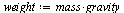 Define variables for mass and gravity, then enter the expression for the weight and press [Enter].