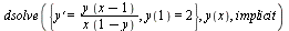results. Maple can provide both an implicit and an explicit solution of this variable-separable equation. An explicit solution of the initial value problem (IVP) consisting of this equation and the initial condition is obtained in Table 2.