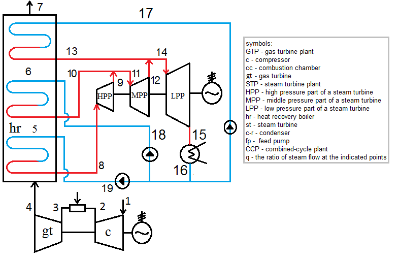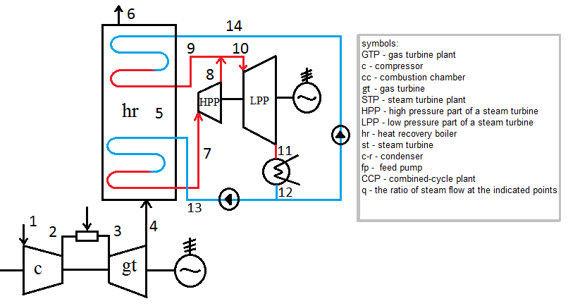 Calculation of thermal efficiency of a two-circuit steam and gas (binary) plant