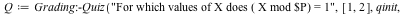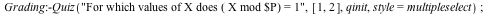 For completeness, we will also show how this question could be created and graded using the Grading[Quiz] command: