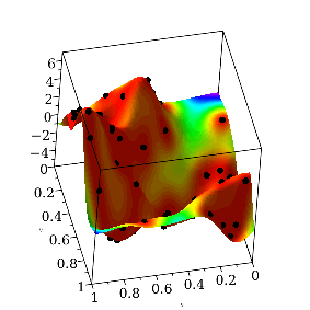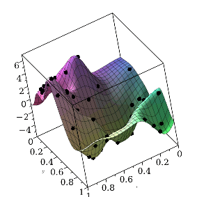 Previous versions of Maple already included interpolation methods for 1-dimensional data and data given for a grid of points, like in the previous example. But Maple 2018 is the first version where you can interpolate data given for points in arbitrary, unstructured locations.