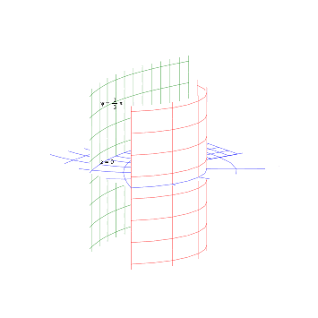 The plots[coordplot3d] function plots a graphical representation of most of the three dimensional coordinate systems currently supported in Maple. Each of the coordinates is held constant at a certain value (see below), while the other two vary.  This gives rise to intersecting surfaces, one for each constant value.  See coords for details of each of the coordinate systems available.
