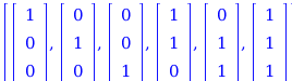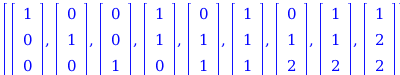 part1 := seq(seq(([0$i, 1$j, 0$(ell - i - j)], j = 1 .. ell - i)), i = 0 .. ell),