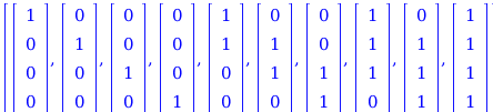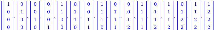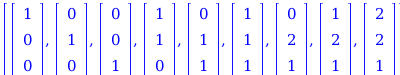 part1 := seq(seq(([0$i, 1$j, 0$(ell - i - j)], j = 1 .. ell - i)), i = 0 .. ell);