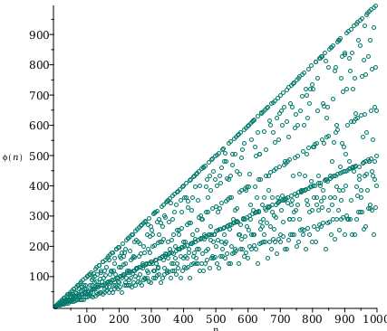 plots:-pointplotseqn,Totientn,n=2..1000,labels=n,φn,symbol=circle, color=Niagara BlueGreen,size=600,golden