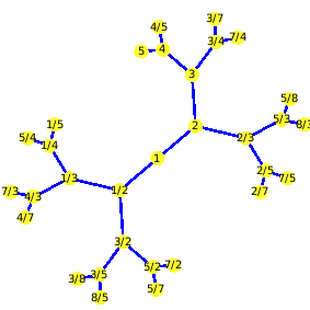 DrawTreeprocn,graphstyletree     local cwseq, cwgraph;     cwseq  x  convert x, 'string' ~  seq NumberTheory:-CalkinWilfSequencei, i = 1 .. n   :     cwgraph  GraphTheory:-Graph  seq  cwseqi, cwseq floor 1/2  i   , i = 2 .. n   :     return GraphTheory:-DrawGraphcwgraph,style=graphstyle; end proc: