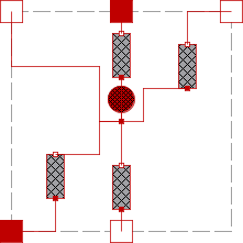 All Thermal Conductor components are connected to the Heat Capacitor. The port_center is directly connected to the Heat Capacitor.