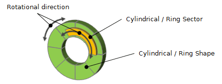Moving Boundary Manager, Rotational calculates normalized contact area ratio between concentric cylindrical / ring sector and shape with 1-D rotational angles.