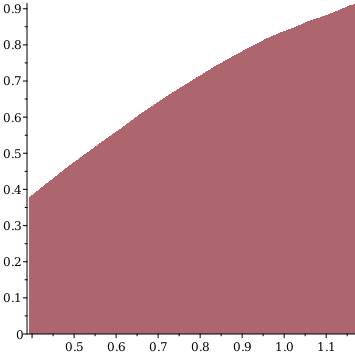 Rplots:-shadebetweenLx,0,x=π8..3π8,showboundary=false,positiveonly