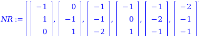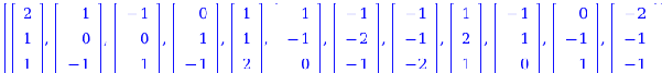 "NegativeRoots" : a list of column vectors defining the negative roots Δ. A root is negative if its first non-zero component is k or kI , where k is a negative integer.