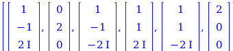 Note that first two components of the roots are real and the third component is pure imaginary.