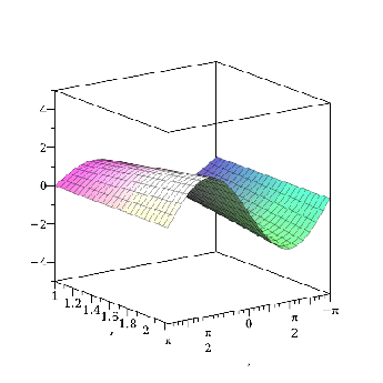 Exploreplot3dsinaxby,x=π..π,y=1..sqrt5,view=5..5,orientation=vertical,parameters=a=1..4.0,placement=left,b=1.0..sqrt5,placement=right