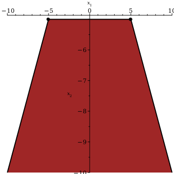 Alternatively, a polyhedral set can be created via its V-Representation by calling PolyhedralSet(vertices, rays, coordinates), supplying the set's vertices and extreme rays.  The rays are an optional argument, required to represent unbounded sets.  If coordinates is not specified, default coordinates names are generated for the set.