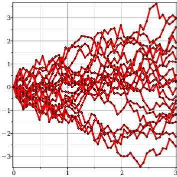PPathPlotWt,t=0..3,timesteps=50,replications=20,thickness=3,color=red,axes=BOXED,gridlines=true:P