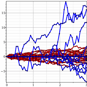 P2PathPlotW2t,t=0..3,timesteps=50,replications=20,thickness=3,color=blue,axes=BOXED,gridlines=true:P2