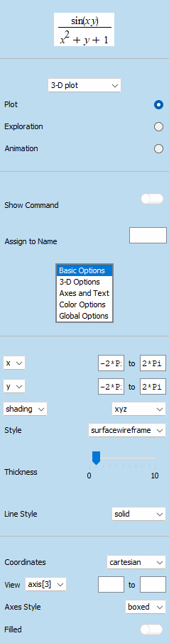 Maple offers numerous plot options, such as axis styles, title, colors, shading options, surface styles, and axis ranges, which give you complete control to customize your plots.