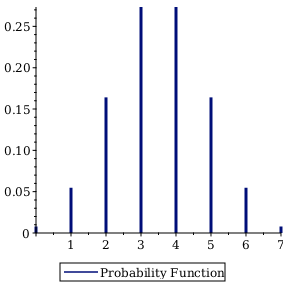 Distribution1 := BinomialRandomVariable(7,1/2):
