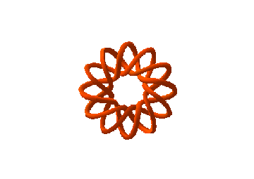 algcurves:-plot_knot(g,x,y,epsilon=0.8,radius=0.1,axes=none,color="OrangeRed",orientation=[75,0,0])>);