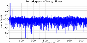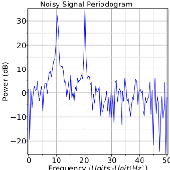 Welch( Noisy_Signal, samplerate = sample_rate, segmentsize = num_points, output = periodogram, periodogramoptions = [ title = "Periodogram of Noisy Signal" ] )