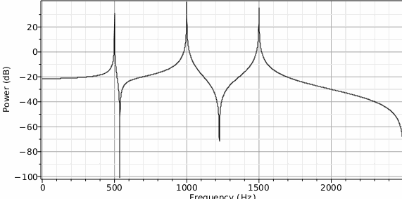 R := PowerSpectrum( X, samplerate = fs, variety = signal, window = Hamming, powerscale = dB/Hz, output = record ):