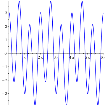 g := t -> cos( 10 * Pi * t ) + 3 * cos( 20 * Pi * t ) + 2 * cos( 60 * Pi * t );