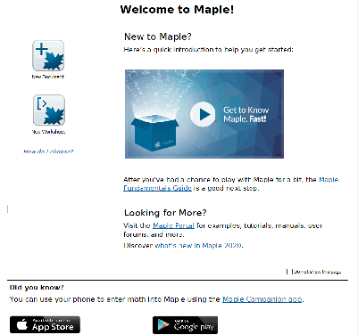 The Start page makes it easier for new users to find the best resources for their first steps with Maple.  These resources include: