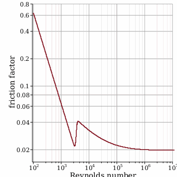 And, Turbulent flow's friction factor is defined with (Swamee and Jain's approximation):