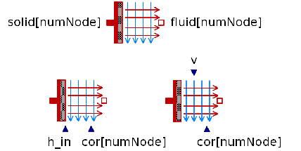 All Thermal Conductors are connected to the Heat Capacitor. The port_center  is directly connected to the Heat Capacitor.