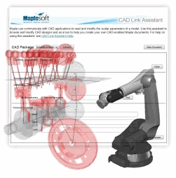 Maple adds important analysis capabilities to CAD systems, giving CAD users the ability to use Maple's computational power to analyze and optimize designs. Maple connects to the three major CAD tools on the market: Solidworks, NX, and Autodesk Inventor. With Maple 15, CAD connectivity is expanded to include NX 7.