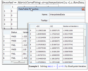 Working with large amounts of data is seamless in Maple 15 using the new data table, which can be embedded directly into your document. The data in the table can be changed both interactively and programmatically, to provide both power and flexibility for your application.