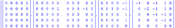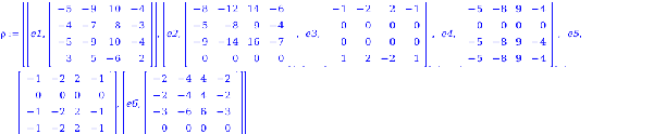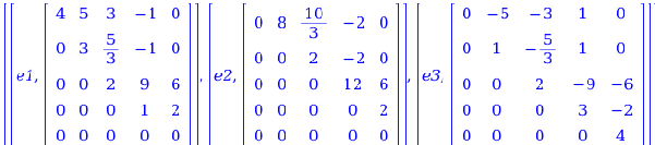 L:=e1,e2=5e15e23e32e5,e1,e3=e1+e2e3+2e5,e1,e4=4e13e23e3e4e5,e1,e5=4e1+5e2+3e3e4+e5,e2,e3=2e1+2e2+2e5,e2,e4=e2e4,e2,e5=4e1+4e2+3e3+e5,e3,e4=e1e2e5,e3,e5=e1+2e2+e3e4,e4,e5=3e1+3e2+3e3