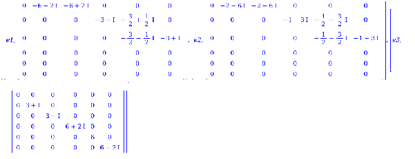 L3:=e1,e4=4e1,e1,e5=3e1,e2,e4=1+Ie2,e2,e5=e2,e3,e4=1Ie3,e3,e5=e3,e4,e5=3e1+e2+e3
