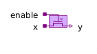 The PRXFERGATE component models a tristate buffer with an active-low enable input and reduced output strength.